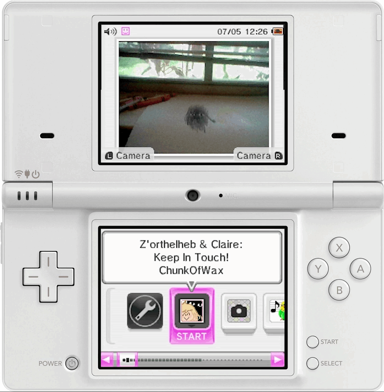 After a lot of work, this project has finally wrapped up!A while ago, I created box art up for a what a hypothetical Nintendo DS game featuring Z'orthelheb and Claire would look like, titled "Z'orthelheb & Claire: Keep In Touch!"Since then, I've spent the last few months doing what I can to bring this game to life without actually making a real game. This involved making real life physical props, doing a little bit of modding, creating convincing gameplay, making advertising materials, etc etc.You can watch it right now! Below is a YouTube link and a link to the Z&C Are.na to see other related materials, like the magazine print ad and TV spot that I made :)